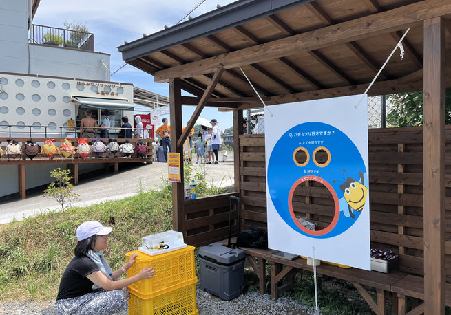 玉入れゲーム。ハチミツやスエンソンシールはゲット出来たかな!
