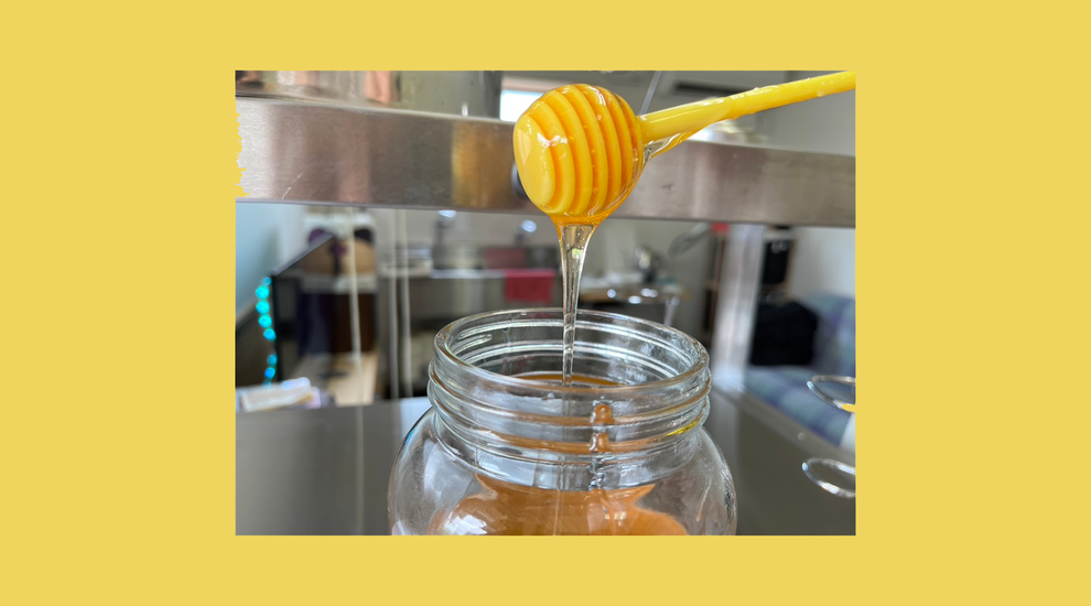 蜂みつソフトクリームは、地元を中心に採った蜂みつをたっぷり2回流しています。